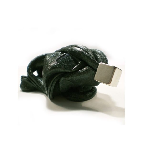 Nová receptúra – super magnetická plastelína. Čierna a tajomná. Pozorujte ako sa plastelína ochotne spojí s magnetom! Pozorujte, ako sa plastelína zmagnetizuje a je možné s ňou zdvíhať ľahké kovové predmety.