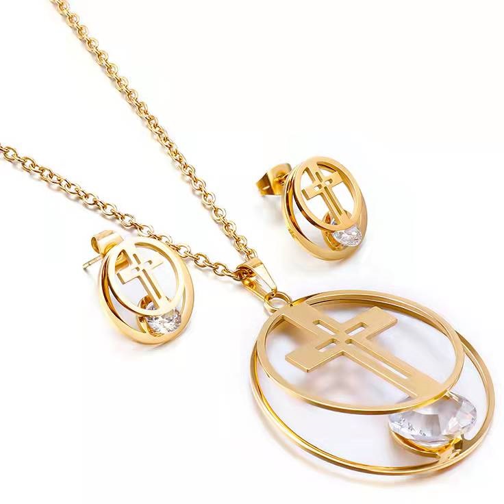 Nádherný set Round Cross za bezkonkurenčnú cenu. Set obsahuje náhrdelník a náušnice. Náušnice sú napichovacie. Šperk neobsahuje nikel, preto je vhodný aj pre ľudí s citlivou pokožkou. Šperk je ródiovaný. (Ródiovanie je povrchová úprava šperkov, ktorá zabezpečuje ich zlepšenú odolnosť, kvalitu, životnosť a lesk.)