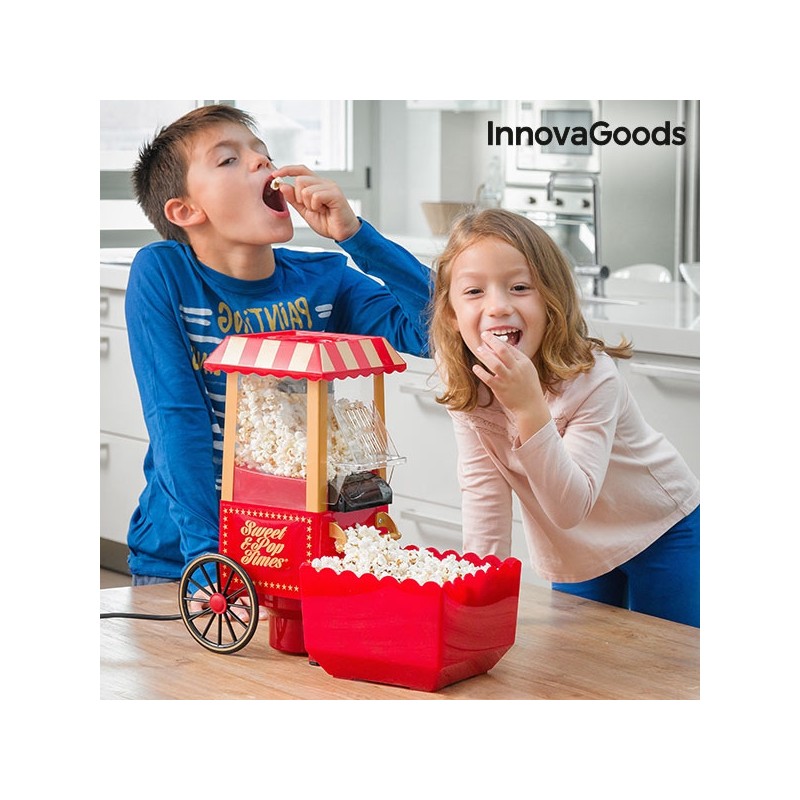 Svojim atraktívnym dizajnom si získa srdcia detí aj dospelých. Presná replika popkornových vozíkov, ktoré na začiatku 20. storočia stávali na trhoch. Tento prístroj na výrobu pukancov je skvelým doplnkom na každú párty a večierok. Ľahko v ňom za pár minút pripravíte chrumkavý popcorn, a tak si môžete kedykoľvek vychutnať čerstvé domáce zobanie. Vhodný tiež ako originálna dekorácia.